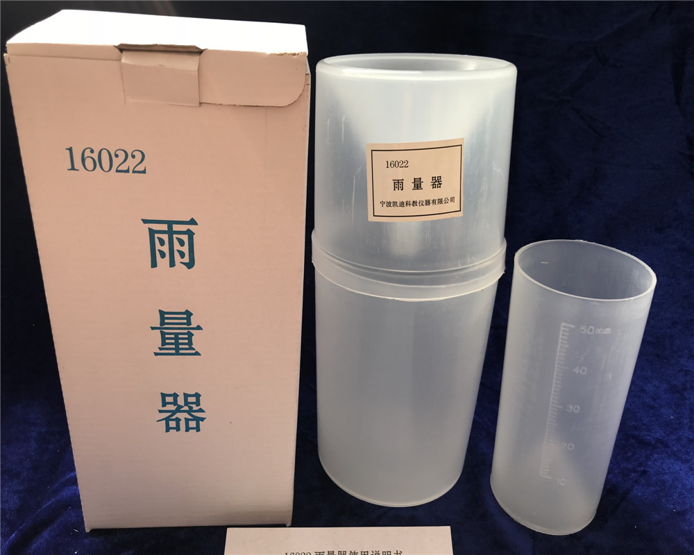 上置漏头,内筒有刻度,圆形塑料桶。供下雨是接盛雨水,能得出当次的下雨量多少毫米。