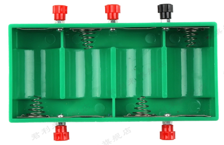 规格:整体式,可放置1号电池4节,磷铜电极,正极带有凹点,ABS材料,5只接线柱,外形尺寸不小于:155×70×40mm
