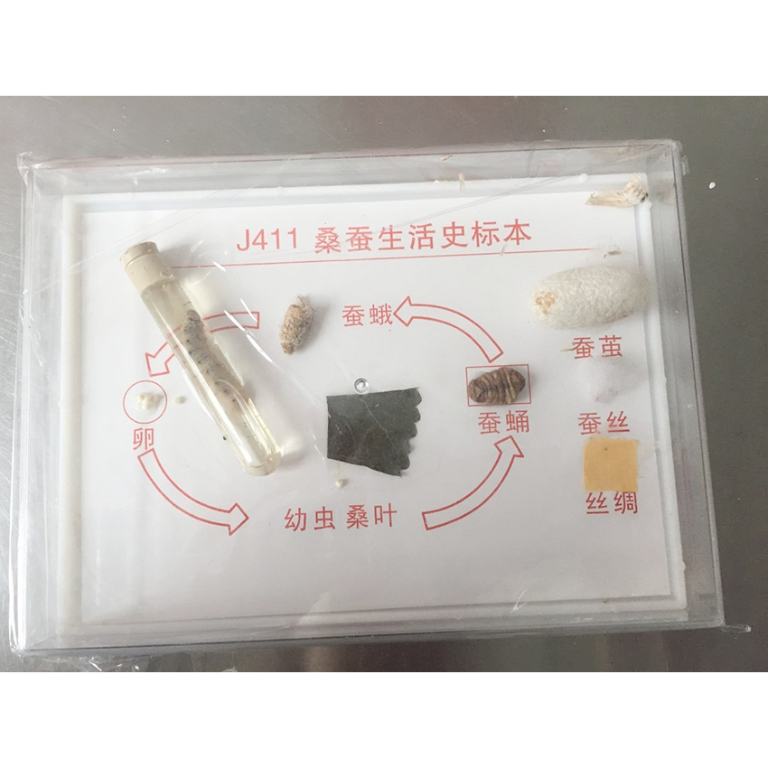 材质:标本由卵、幼虫、蛹、雌雄成虫及茧组成,附蚕丝、丝绸及桑叶。按生活史顺序排列。尺寸规格≥160×70×18mm