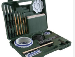 1、笔洗1件:青花瓷材质,直径150mm、高度50mm;2、笔架1件:青花瓷材质,5山头、长度130mm,高度45mm;3、砚台1件:带盖石砚,直径120mm;4、毛笔8件:加健毛笔,大、中、小提斗,大、中、小白云、花枝俏1枝,小依纹1枝;5、画毡1件:毛毡长宽厚500mm×500mm×3mm;6、调色盘1件:聚丙稀材质,13眼梅花型,直径14mm;7、笔帘1件:竹制;8、镇尺一对:石质,黑色或灰色,长宽高198mm×38mm×9mm;9、墨块:金不换;10、印尼盒1件:直径70mm;11、工具箱1件:中空吹塑包装、所有工具定位。